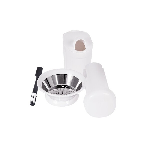 Мякоть отводится в специальный отсек на 2000 мл. Сок сливается в емкость на 900 мл. Есть система прямой подачи жидкости, она будет полезна при эксплуатации. Горловина круглая с диаметром 75 мм. В нее легко закладывать кусочки фруктов и овощей.
