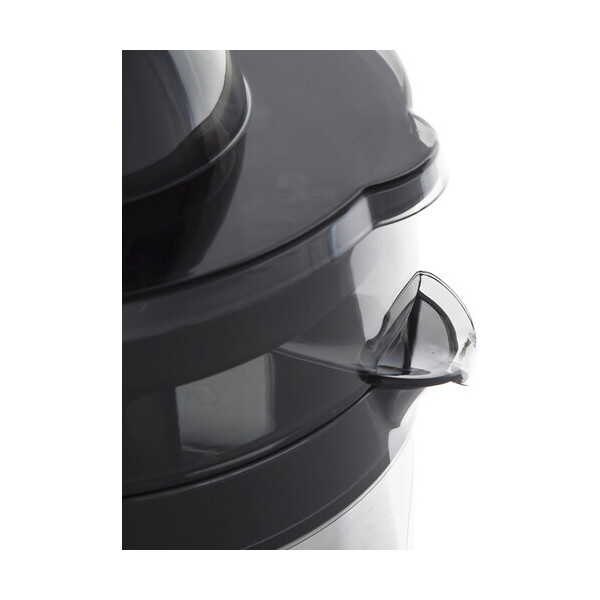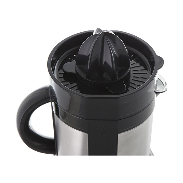 Корпус соковыжималки Redmond RJ-913 выполнен из высококачественной нержавеющей стали, не подверженной механическим повреждениям и образованию коррозии, что обеспечивает устройству длительный срок службы. За счет наличия специальных прорезиненных накладок на ножках модель максимально устойчива даже при нахождении на скользкой поверхности. Длина шнура 0,9 м оптимальна для комфортной эксплуатации. Устройство снабжено двумя сменными конусными насадками разного диаметра, которые позволяют получать фреш как из крупных апельсинов и грейпфрутов, так и из небольших мандаринов, лимонов и лаймов.
