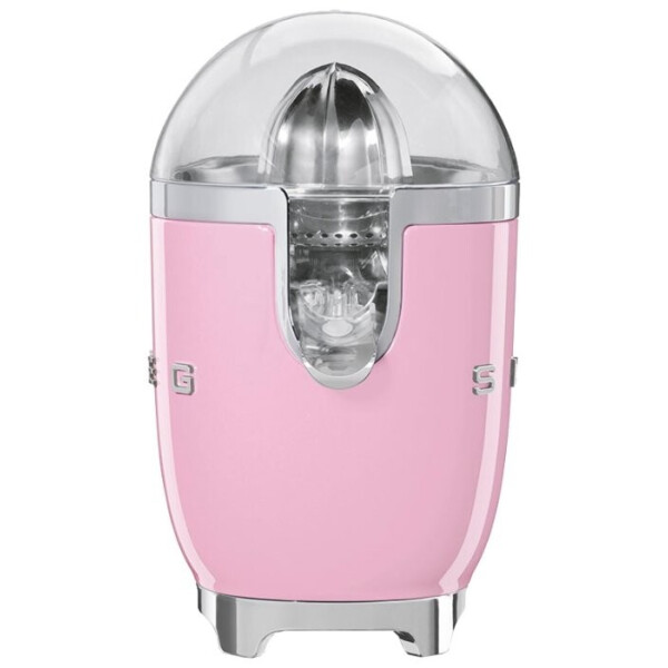 Соковыжималка Smeg CJF01PKEU для цитрусовых дизайна «50-х». Корпус из алюминия розового цвета предусматривает наличие чаши и крышки из тритана, который отличается прочностью и надежностью. Безопасность и удобство эксплуатации гарантируют функции автоматического включения и выключения. Конструкция носика предотвращает возможность разбрызгивания.
