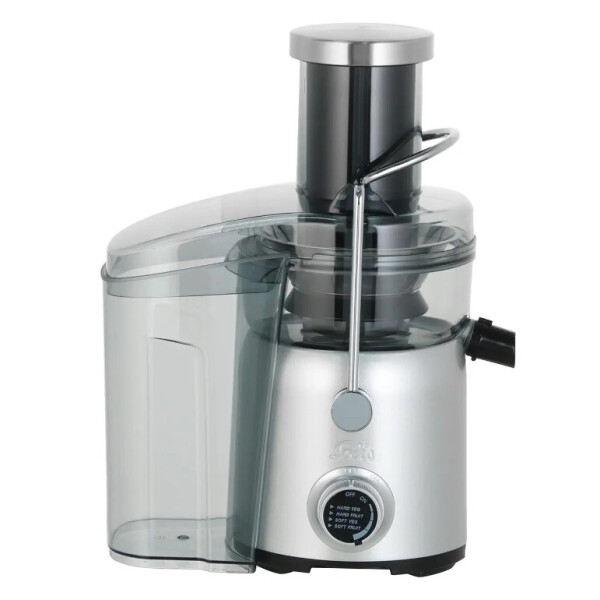 Соковыжималка центробежного типа SOLIS 8451 имеет загрузочное отверстие, диаметр которого составляет 75 мм. Корпус изготовлен из нержавеющей стали. Есть 4 скоростных режима, оптимальных для обработки мягких или твердых фруктов и овощей.