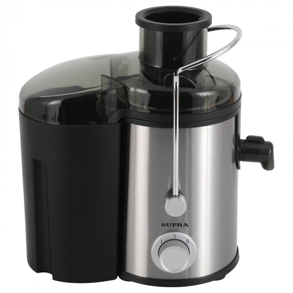 Электрическая соковыжималка SUPRA JES-1410 работает за счет центробежной силы. Внутри установлена центрифуга, которая вращается на большой скорости и перемалывает фрукты и овощи. За счет принципа работы и мотора в 400 вт сок готовится очень быстро.