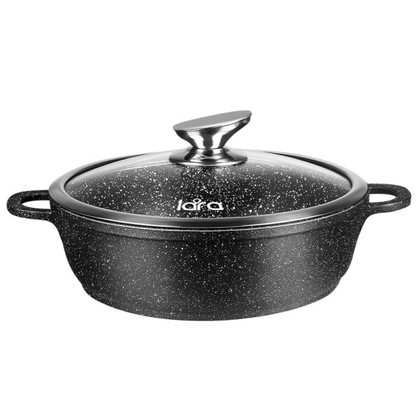 Сотейник LARA LR02-212 Rio может заменить сразу несколько видов посуды: в нем можно жарить, варить, тушить или томить блюдо, а благодаря высоким стенкам в 70 мм перемешивать ингредиенты окажутся очень удобно. Изготовлен сотейник из литого алюминия, ему не страшны самые высокие температуры, а антипригарное покрытие облегчит процесс ухода за посудой и позволит сэкономить на масле при жарке. LARA LR02-212 Rio можно использовать для готовки на индукционных плитах, диаметр его -28 cм, а объем – 3.4 л.