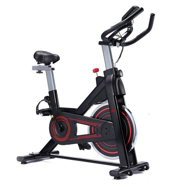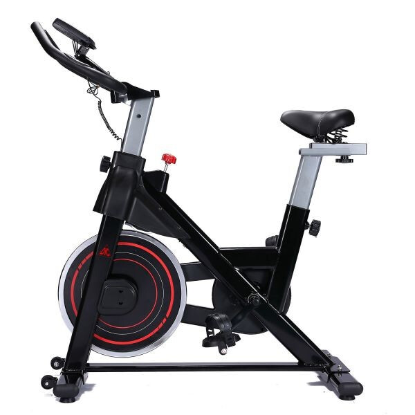 Вертикальный механический спин-байк с ременным типом привода и колодочной системой нагружения. Изменение нагрузки с помощью удобной рукоятки на корпусе тренажера.