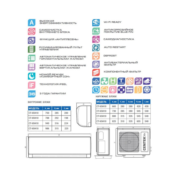 Наши инженеры смогли спроектировать кондиционеры так, чтобы совместить максимальный уровень производительности сплит-систем с его тихой работой, которая бы не смогла причинять дискомфорт при использовании. Выбирая кондиционеры Centek Air, вы можете быть уверены в качестве и надежности всех комплектующих использованных при сборке нашей продукции.