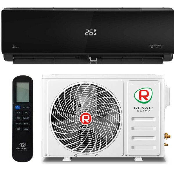 Royal Clima (Роял Клима) RC-AN28HN эта настенная сплит-система выполнена в классическом стиле, но с дополнительным штрихом: внутренний блок представлен в элегантном черном цвете. Система имеет низкий уровень шума. Изделие состоит из двух блоков: внутреннего и внешнего. Устройство оснащено дополнительной звукоизоляцией компрессора.