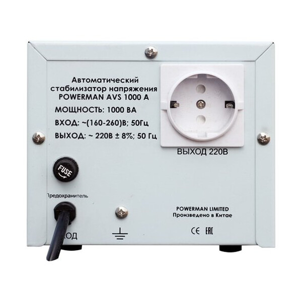 Стабилизатор напряжения Powerman AVS 1000A – бюджетное решения для защиты приборов компьютерного и телекоммуникационного оборудования, бытовой электротехники от резких колебаний, пониженного и повышенного уровня напряжения сети. Обеспечивает для подключенного оборудования в диапазоне напряжений сети 160В - 260В выходное напряжение 220В ± 8% .