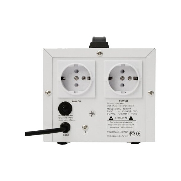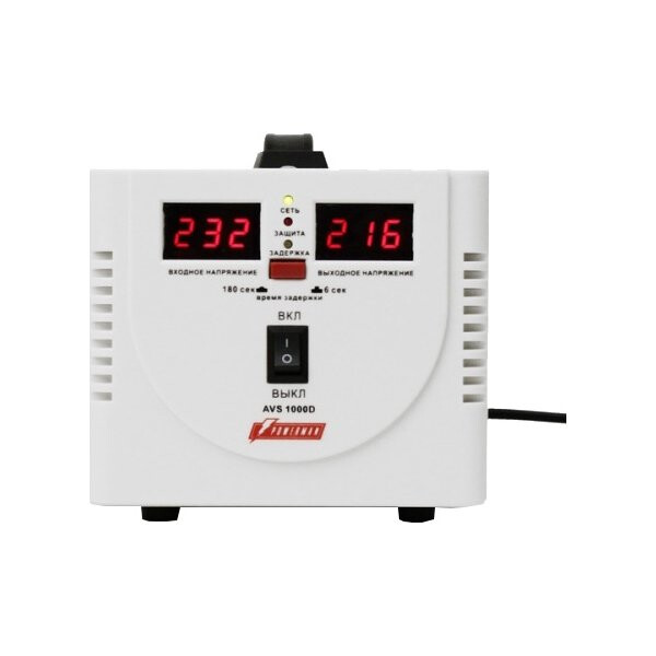 Powerman AVS 1000D - однофазный стабилизатор мощностью 1000ВА. Обеспечивает для подключенного оборудования уровень напряжения 220В . В диапазоне напряжений сети 140В - 260В обеспечивает выходное напряжение 220В ± 8%.