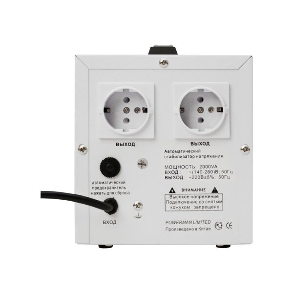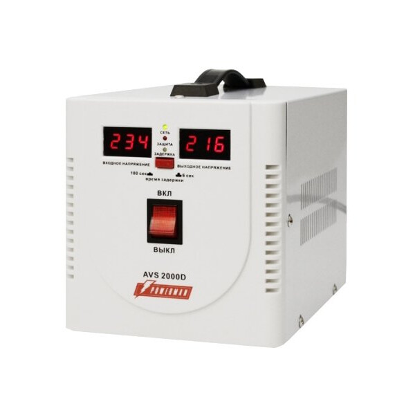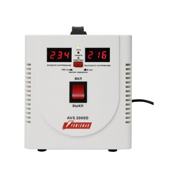 Powerman AVS 2000D - однофазный стабилизатор мощностью 2000ВА. Обеспечивает для подключенного оборудования уровень напряжения 220В (отклонения не превышают допустимые по ГОСТ 32144―2013 «Нормы качества электрической энергии»). В диапазоне напряжений сети 140В - 260В обеспечивает выходное напряжение 220В ± 8% . При слишком высоком или слишком низком напряжении сети, которое стабилизатор не может компенсировать, а также при значительной перегрузке он отключает нагрузку. Питание нагрузки подключается автоматически при восстановлении напряжения сети до рабочего диапазона, либо при снижении температуры. Подключение, после защитного отключения нагрузки или полного отключения сети, происходит с временной задержкой 6сек / 180сек. Высокая перегрузочная способность трансформатора и наличие функций защиты обеспечивает безопасную эксплуатацию в непрерывном режиме. Помимо регулировки напряжения стабилизатор значительно снижает уровень импульсных и высокочастотных помех, попадающих в нагрузку.
