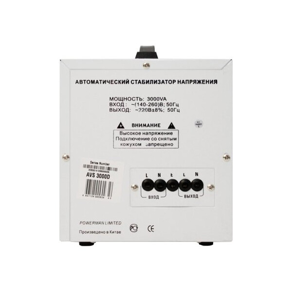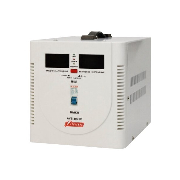 Powerman AVS 3000D - однофазный стабилизатор мощностью 3000ВА. Обеспечивает для подключенного оборудования уровень напряжения 220В (отклонения не превышают допустимые по ГОСТ 32144―2013 «Нормы качества электрической энергии»). В диапазоне напряжений сети 140В - 260В обеспечивает выходное напряжение 220В ± 8% . При слишком высоком или слишком низком напряжении сети, которое стабилизатор не может компенсировать, а также при значительной перегрузке он отключает нагрузку. Питание нагрузки подключается автоматически при восстановлении напряжения сети до рабочего диапазона, либо при снижении температуры. Подключение, после защитного отключения нагрузки или полного отключения сети, происходит с временной задержкой 6сек / 180сек. Высокая перегрузочная способность трансформатора и наличие функций защиты обеспечивает безопасную эксплуатацию в непрерывном режиме. Помимо регулировки напряжения стабилизатор значительно снижает уровень импульсных и высокочастотных помех, попадающих в нагрузку.