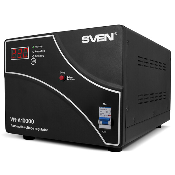 Стабилизатор напряжения серии SVEN VR-A10000 предназначен для стабилизации сетевого питания в условиях повышенного/пониженного входного напряжения. Расширенный диапазон входного напряжения ~140 – 275 ± 3% – позволяет работать устройству в условиях критического состояния энергоснабжения. Стабилизатор оснащен защитой от короткого замыкания, перегрузки и перегрева автотрансформатора.
