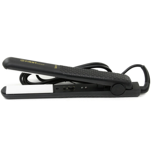 Утюжок для волос First FA-5658-1 – незаменимое устройство для выравнивания волос и придания им формы. Эргономичная форма корпуса позволяет легко справиться с укладкой волос. Термостойкие наконечники дают возможность придерживать утюжок двумя руками, тем самым снижая нагрузку. Рабочей поверхностью утюжка для волос First FA 5658-1 являются две керамические пластины. Керамика – гладкий материал, обеспечивающий лучшее скольжение по волосам, лучшее разглаживание и блеск волос, а также равномерное прогревание пряди при укладке. Температуру можно регулировать с помощью поворотного регулятора от 120 °C до 200 °C, что позволит подобрать нужную под ваш тип волос. Корпус утюжка для волос First FA 5658-1 сделан из пластика и представлен в черном цветовом варианте. Длинный, вращающийся сетевой шнур дает достаточно свободы в перемещениях и движении во время использования утюжка.