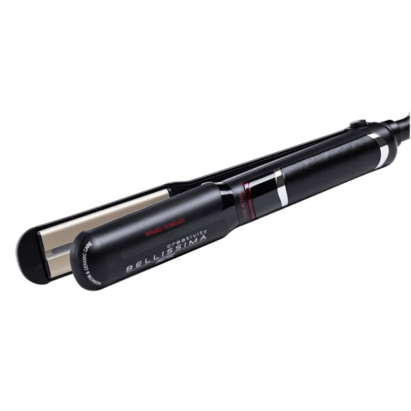 Выпрямитель для волос Imetec Bellissima 11010 обладает весьма лаконичным дизайном. Он заключен в черный корпус и имеет декоративные красные детали. Однако внешний вид – далеко не единственное достоинство утюжка для выпрямления волос. При мощности в 39 ватт он имеет 11 температурных режимов работы (230°, 220°, 210°, 200°, 190°, 180°, 170°, 160°,150°, 140° и 130°). Это позволяет подобрать идеальный вариант для волос любого состояния: от только что окрашенных до волос, никогда не подвергавшихся окрашиванию, толстых, тонких, ломких и нормальных. Благодаря керамическому покрытию пластин волосы не будут подвергаться температурным перепадам и останутся здоровыми и ухоженными.