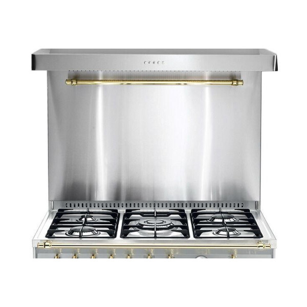 Стеновая панель Lofra предназначена для защиты стен кухни от брызг, пара и испарений, образующихся во время готовки. Модель подходит для совместного использования с плитами Lofra соответствующей ширины. Изделие выполнено из латуни и дополнено деталями цвета бронзы.