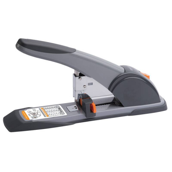 Мощный степлер на 120 листов, прорезиненная рукоять, инновационный механизм удаления застрявшей скобы,  фронтальная загрузка скоб.
