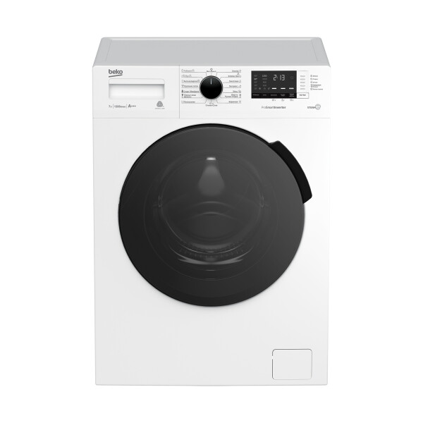 Белая стиральная машина с загрузкой барабана 7 кг и 15 программами для разных типов ткани. Дополнительные режимы стирки позволяют добавлять замачивание и полоскание и легко удалять шерсть животных с вашей одежды. Стиральная машина оснащена инверторным мотором ProSmart, который работает тихо и экономично потребляет электричество, технологией обработки паром SteamCure, электронным контролем дисбаланса и контролем пенообразования.