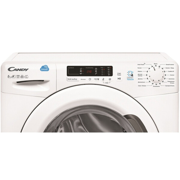 Одна из главных особенностей данной модели является возможность управления со смартфона "Smart Touch" через NFC. Candy Smart Touch – это стиральные машины с персональным помощником. Для активации всех функций владельцу достаточно загрузить приложение на свой смартфон и приложить его к верхней панели машинки, а дальше понадобится только следовать инструкциям голосового помощника, который поможет вам.