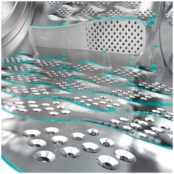 Новая волновая перфорация барабана в сочетании с особой волнообразной формой 3D-ребер смягчает волокна, что обеспечивает более бережный уход за одеждой, позволяет добиться безупречного качества стирки и свести к минимуму образование складок.
