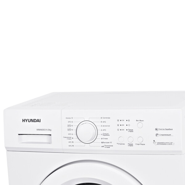 Стиральная машина WMA6003 новинка 2020 года. Ее глубина 44 см, однако машина вмещает до 6 кг одежды. WMA6003 экономно потребляет энергию, класс энергоэффективности А++. На стирку 1 кг белья машина расходует всего 0,15 кВт/ч, это позволяет регулярно пользоваться режимом интенсивной стирки или стирать каждый день. Также все модели HYUNDAI оснащены функцией отложенного старта. Она полезна тем, что начинает стирку в заданное время. Стиральная машина поддерживает 8 режимов, среди них программы для хлопчатобумажных изделий, синтетики, деликатных тканей. А также специальные программы: