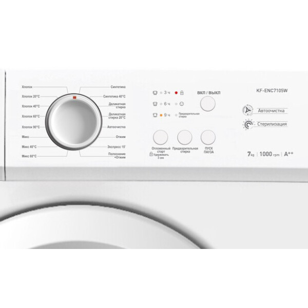 Стиральная машина Kraft KF-ENC7105Wс загрузкой белья до 7 кг оснащена 16 программами стирки, максимальная скорость отжима составляет 1000 оборотов в минуту.