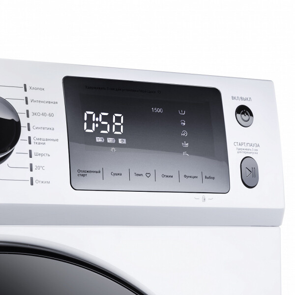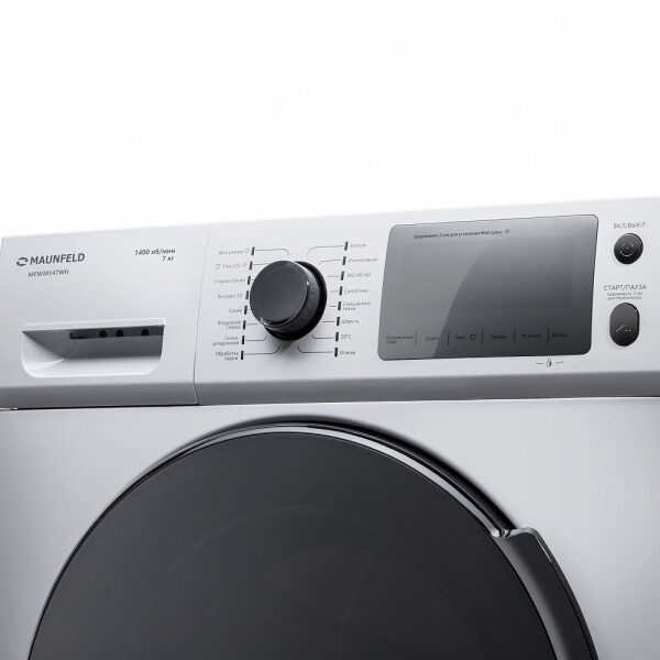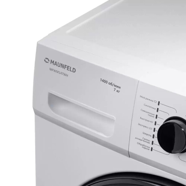 СтиральнаямашинаMaunfeldMFWM147WH (отдельностоящая, фронтальная загрузка, максимальная загрузка белья для стирки 7 кг, максимальная скорость вращения при отжиме 1400 об/мин, управление: электронное c LCD дисплеем, количество режимов стирки: 16, отсрочка старта, электронная система балансировки загрузки)