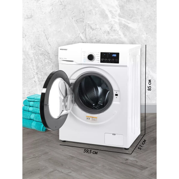 Высший класс энергоэффективности А+++ характеризуется низким потреблением воды и электричества. Машинка потребляет до 62 л воды за цикл стирки с максимальной скоростью отжима 1400 оборотов в минуту.