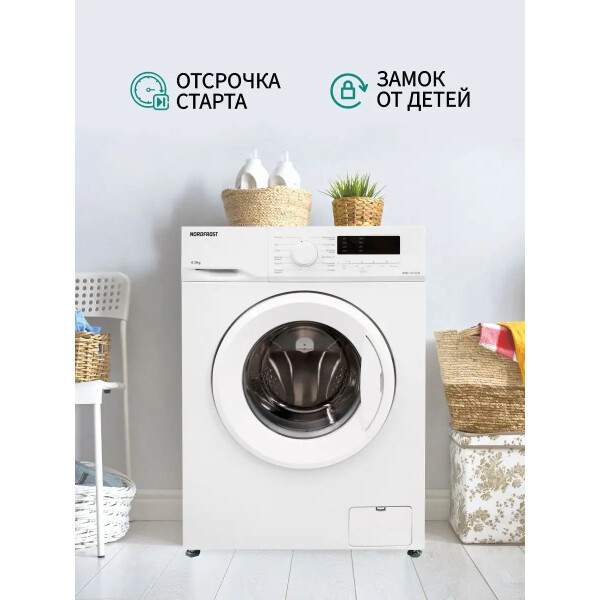 Стиральная машина NORDFROST WM2 6100 W с объемом бака 40 л и загрузкой белья до 6 кг функциональная, компактная, надежная и понятная в использовании модель, а ее современный и стильный дизайн идеально впишется в интерьер вашей ванной или кухни!