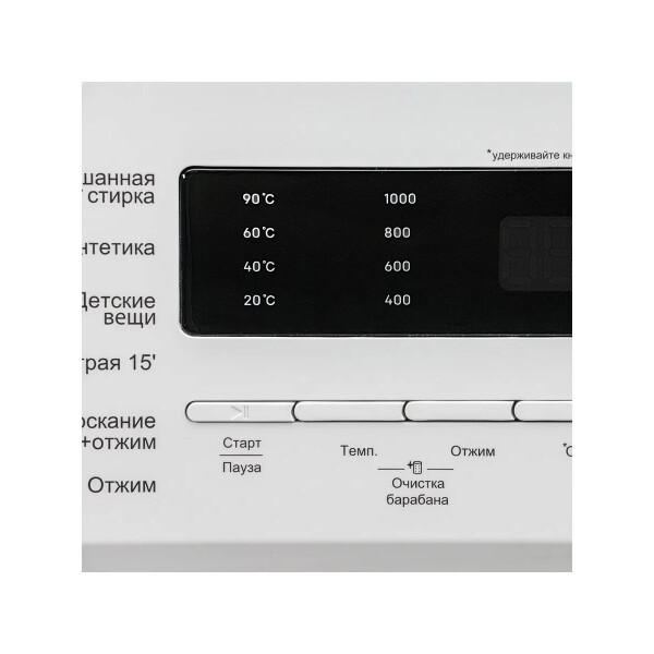 Кроме того, стиральная машина оснащена режимом быстрой стирки для слабозагрязненных вещей длительностью 15 минут и программой Эко. Предварительная стирка необходима для удаления сложных пятен и сильнозагрязненных вещей. Время цикла увеличивается на 20 минут. Функция Отсрочки старта позволяет запускать машинку в удобное для вас время. Важная опция Замок от детей блокирует устройство во время работы, тем самым защищает от случайного открытия дверцы и изменения настроек детьми.