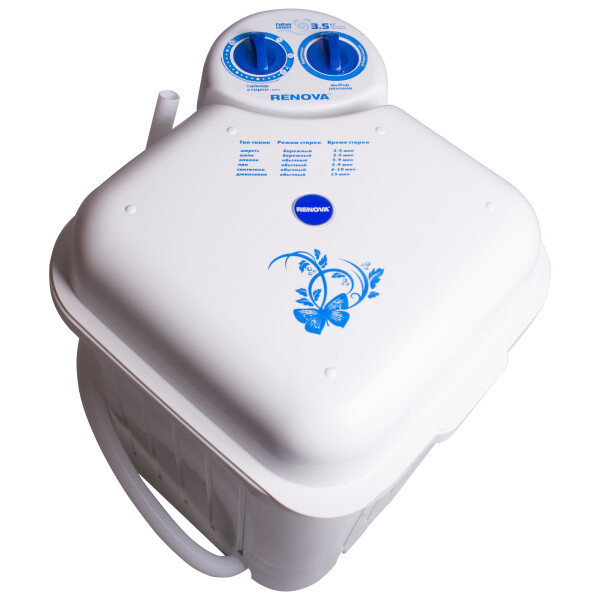 Мини-стиральная машина Renova WS-35E станет практичным и выгодным приобретением для очищения вещей на даче. Небольшая высота и маленький вес позволят без труда перевезти агрегат в квартиру на зимний сезон. Такая машина будет занимать очень мало места. За счет реверсного типа (вращение активатора по и против часовой стрелки) вещи очищаются качественно. В комплектацию стиральной машины входит специальный фильтр, который безукоризненно собирает ворс и пух. Renova WS-35E изготовлена из полипропилена, что гарантирует ударопрочность и термостойкость ее корпуса.