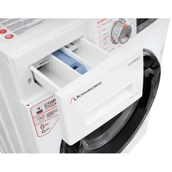 Отдельностоящая стирально-сушильная машина Schaub Lorenz SLW TW8441 I оснащена инверторным мотором, работающим тихо благодаря минимальному уровню вибраций при стирке и отжиме.BLDC Brushless DC electric motor (бесколлекторный электродвигатель постоянного тока). Особая технология данного двигателя гарантирует высокую надежность и долговечность, экономию электроэнергии и потребления воды. Вместимость загрузки до 8 кг позволит единовременно стирать большое количество белья.