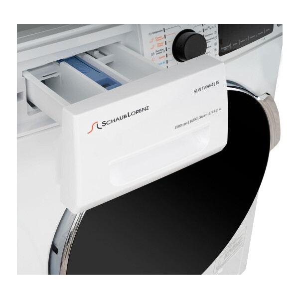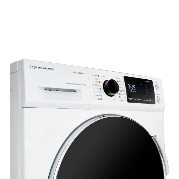 Отдельно стоящая стиральная машина с сушкой Schaub Lorenz с фронтальным типом загрузки и инверторным двигателем, который работает тихо благодаря минимальному уровню вибраций при стирке и отжиме.