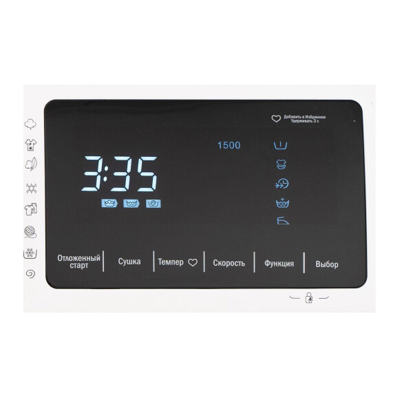 Представленная модель содержит 16 программ, которые позволяют выбирать необходимый режим под разный тип белья, а благодаря увеличенному до 47 см. диаметру дверцы осуществлять удобную загрузка и выгрузка объемного белья.