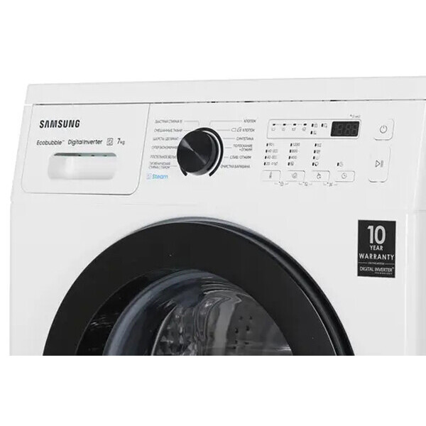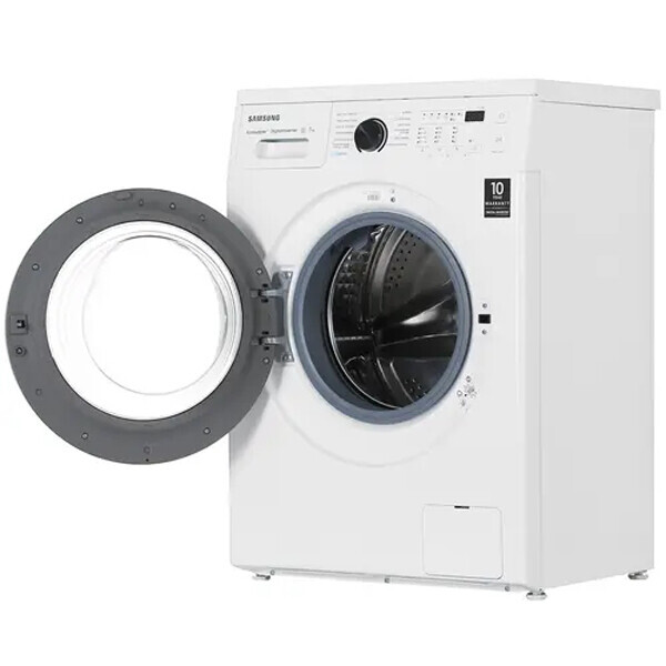 Стиральная машина Samsung WW70A4S21CE/LP с классическим белым корпусом и фронтальной загрузкой вмещает 7 кг. Техника оснащена удобными кнопками и поворотными рычагами для выбора 12-ти программ, температуры стирки и скорости отжима. На дисплее указаны все важные индикаторы, включая оставшееся до конца цикла время. Об окончании стирки машинка предупредит звуковым сигналом.