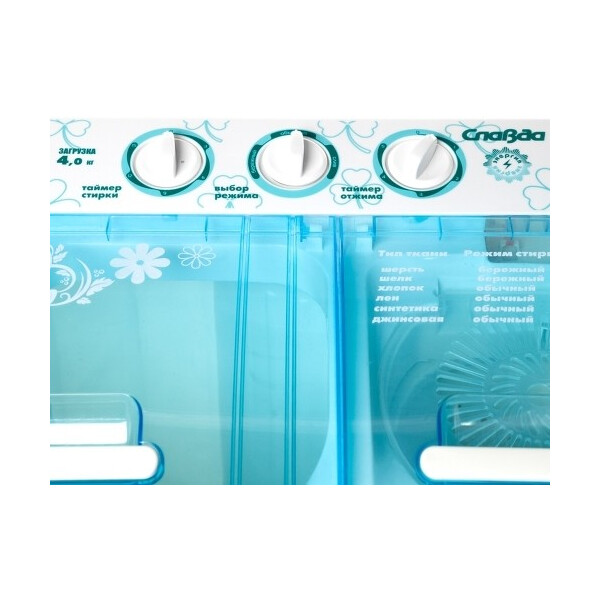 Малогабаритная полуавтоматическая стиральная машина Славда WS-40PET, несмотря на свои небольшие размеры, способна единовременно отстирывать до 4 кг белья. Эта простая с виду модель гарантирует своему хозяину хороший результат стирки при минимальном потреблении энергии. Вертикальный тип загрузки и выгрузки белья удобен благодаря большой крышке люка, которая находится сверху, прямо под механической панелью управления. Даже несмотря на то, что внешний вид машинки довольно прост, в ней имеется 2 программы стирки. Выбор одной из двух программ осуществляется при помощи поворотного тумблера.