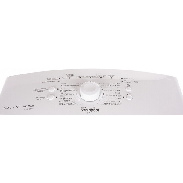 Автоматическая стиральная машина Whirlpool AWE 2215 оснащена электронной системой управления со светодиодной индикацией рабочих параметров. Модель представлена в классическом белом цвете.