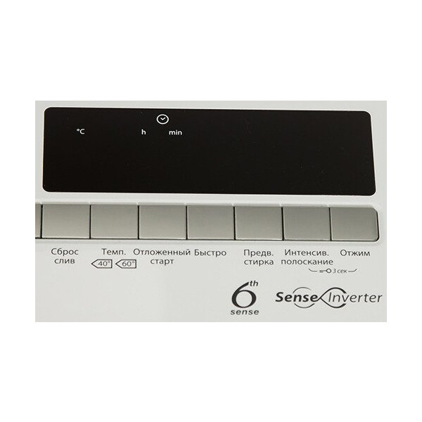 Технология 6th Sense™ автоматически настраивает необходимые параметры работы прибора и помогает экономить время и электроэнергию. Индикатор передозировки моющего средства наглядно информирует о переизбытке порошка, чтобы помочь определить нужное количество для эффективной стирки.