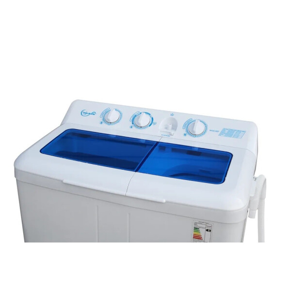 Стиральная машина WILLMARK WMS-85P компактный полуавтоматический прибор с белым корпусом, который весит 21.5 кг.