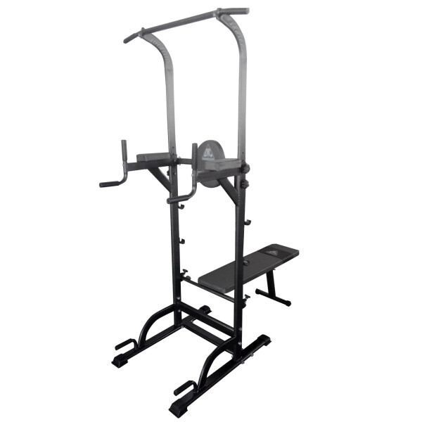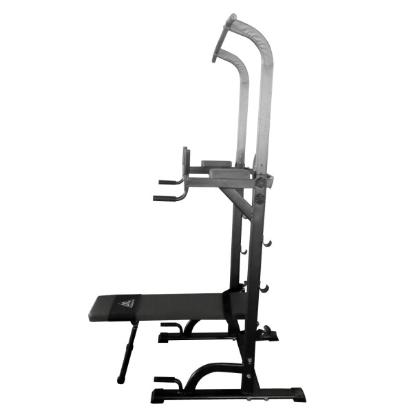 В комплекте идет прямая скамья. С помощью парных крючков на раме турника возможно установить скамью под разным углом для выполнения различных упражнений.