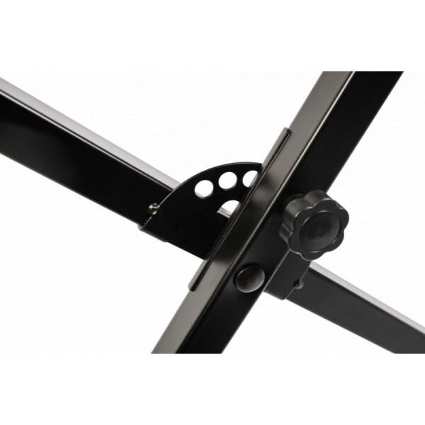 Стойка для синтезатора VESTON KSA003 с надежной фиксацией высоты. Специальные резиновые накладки на ножки и стойки обеспечивают устойчивость и предотвращают напольное покрытие от повреждений. А специальные накладки на опору защищают ваш инструмент от соскальзывания со стойки и механических повреждений (царапин).