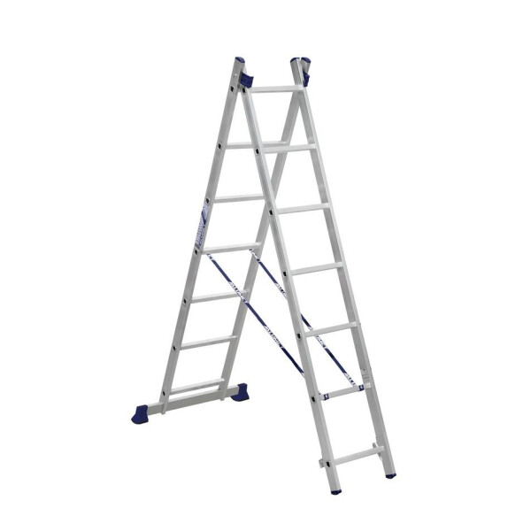 Благодаря тому что универсальная лестница ALUMET 2х7 может складываться, ее практично транспортировать на автомашине на дачу или к строящемуся объекту