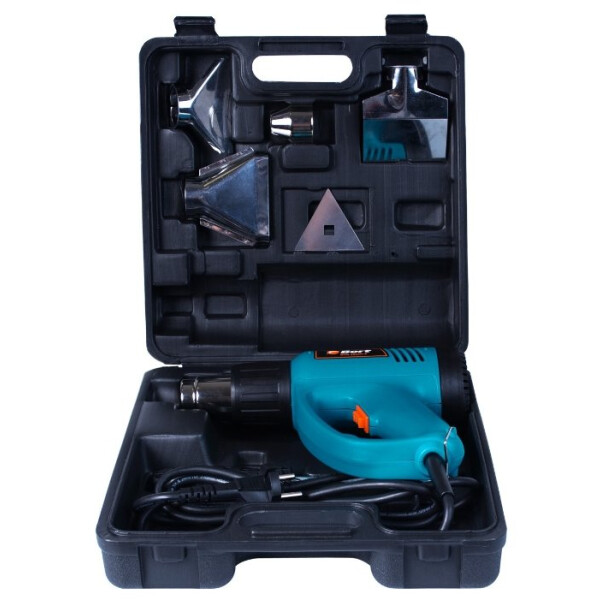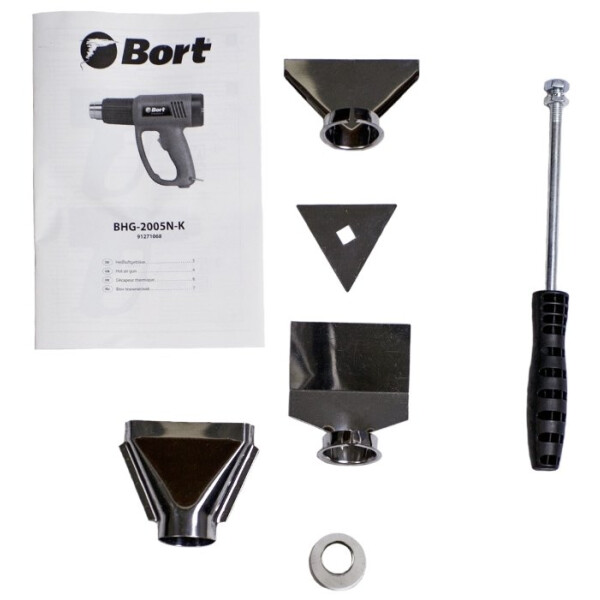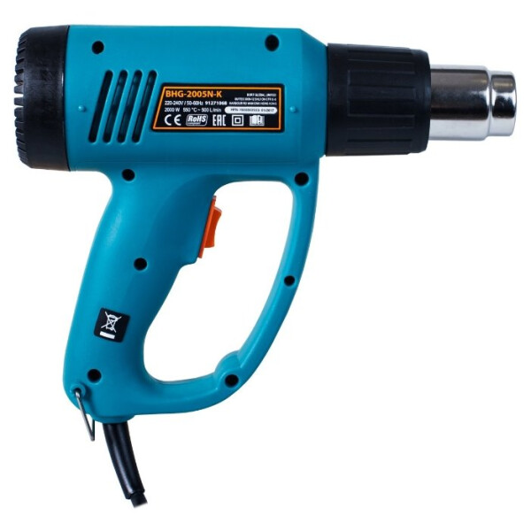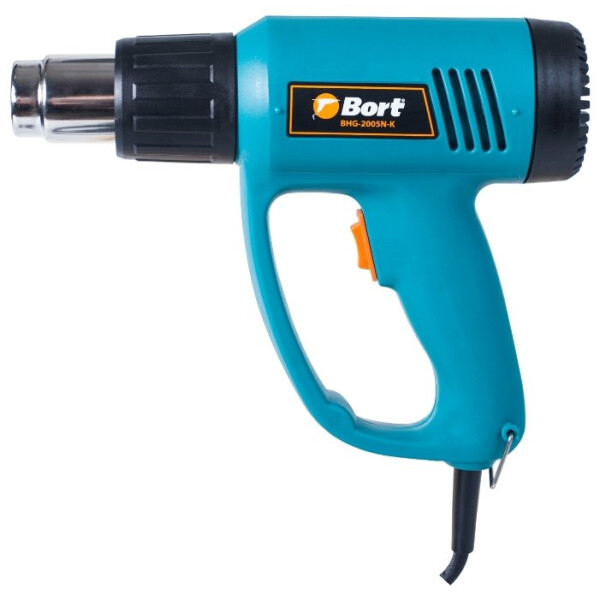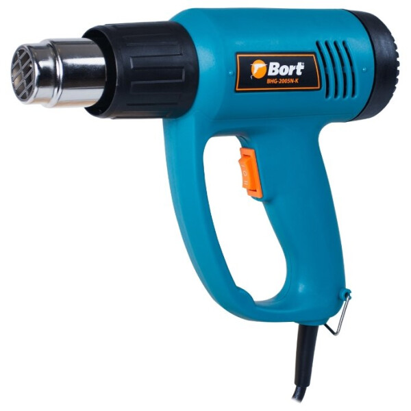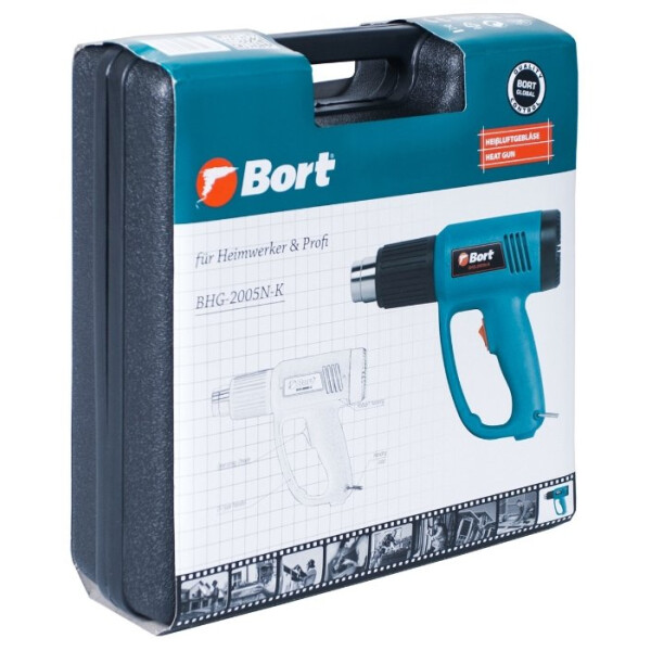 Технический фен BORT BHG-2005N-K подходит для обработки горячим воздухом различных поверхностей, для снятия лакокрасочных покрытий, для пайки и многого другого. Действительно, сфера применения технического фена так велика, что его значение в строительных работах очень сложно переоценить. Мощности фена хватает для любых профессиональных работ. Имеется два режима: поток 300 л/мин при 350 градусах и поток 500 л/мин при 550 градусах. В комплекте вместе с феном идут 4 насадки. Инструмент также можно поставить на поверхность соплом вверх, что позволяет облегчить работу в некоторых ситуациях. При выборе технического фена важно обратить внимание на рукоятку: открытая или закрытая. Фен с рукояткой открытого типа имеет меньшие габариты, однако закрытая рукоятка защищает руку рабочего от горячего потока воздуха и брызг расплавленного материала. Данная модель имеет закрытую рукоятку.