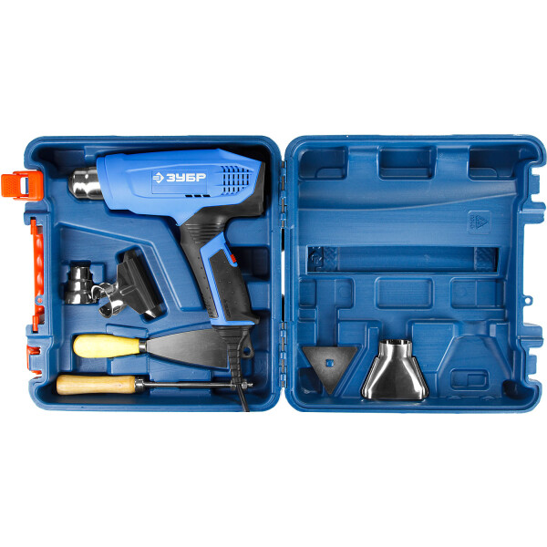 Технический фен Зубр ПРОФЕССИОНАЛ ФТ-П1800 К предназначен для сушки и соединения твердых поверхностей. Для использования инструмента с различными материалами имеется плавная регулировка температуры. Прибор поставляется в комплекте с четырьмя насадками для продуктивного ведения различных работ. Кейс решает вопрос хранения и транспортировки.