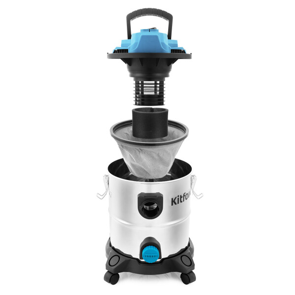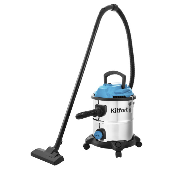 Хозяйственный пылесос Kitfort КТ-548 может проводить как сухую, так и влажную уборку. Пылесос может засасывать воду и влажный мусор. В большой стальной пылесборник вмещается много мусора, а чистить его очень просто. Пылесос оснащен роликами для удобства перемещения. Если шланг присоединить к выходному отверстию, то пылесос начинает работать на выдув. Им можно продуть ноутбук.
