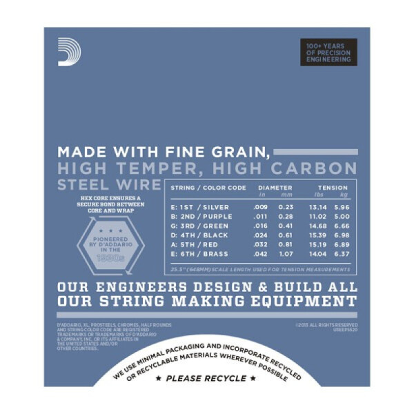 Струны D'Addario EPS520обеспечивают очень яркое, хрустящее звучание и защиту от коррозии в течение длительного срока эксплуатации.