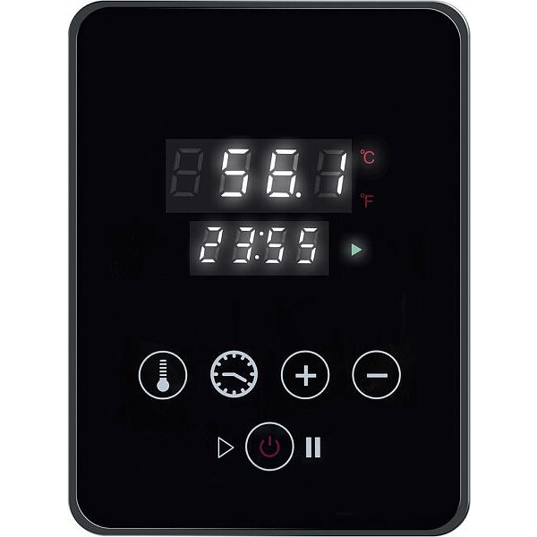 Температуру и время можно настроить на сенсорном дисплее. Максимальная температура 90C, а время 99 часов. Параметры таймера и температуры подсвечиваются белым.