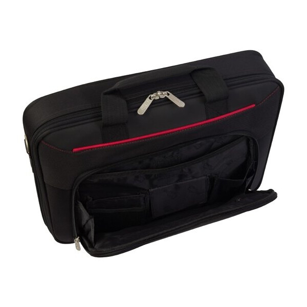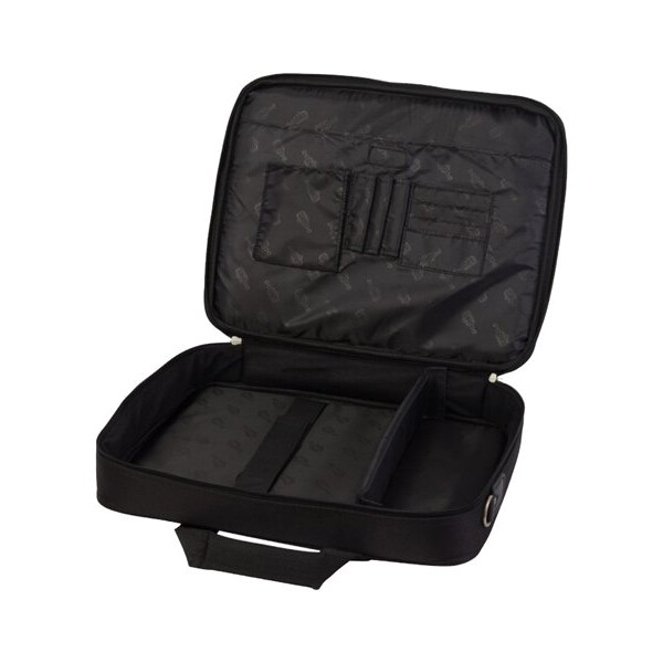Удобная сумка классического дизайна для ноутбуков. В основном отделении предусмотрены съемная перегородка и специальный ремешок для плотной фиксации внутри. Также внутри есть несколько полезных отделений для принадлежностей и личных вещей.