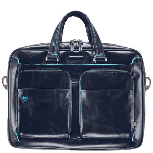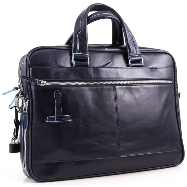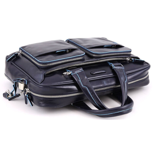 Настоящая звезда в новой коллекции Piquadro: в этой сумке поместятся все вещи, необходимые для работы/учёбы (в том числе ноутбук). А ещё много сопутствующих аксессуаров, ведь не зря же она «оснащена» тремя боковыми карманами на молнии, съёмным чехлом для документов, плечевым ремнём, замком и багажной биркой. И всё это в неизменной телячьей коже высшего качества и с фирменной голубой окантовкой.