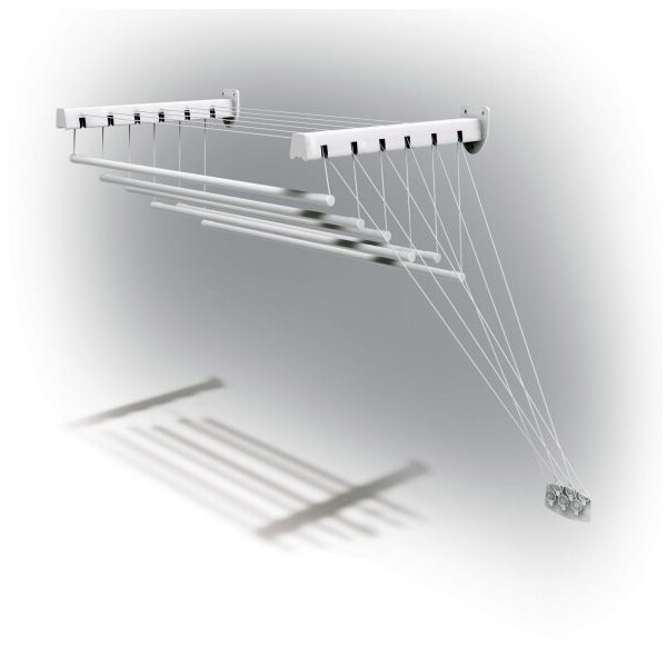 Сушилка для белья Lift 160 — это практичное решение для малогабаритных помещений. Конструкция сушилки предусматривает возможность крепления на стену или на потолок и позволяет разместить до 9,5 метров белья (максимальная нагрузка — 12 кг). Специальный механизм опускания перекладин обеспечивает быстрое и удобное развешивание белья. За счет окраски порошковой эмалью перекладины не оставляют следов на вещах. Размеры в сложенном виде: 10x4,5x161 см, размеры в разложенном виде: 160x43x135 см.