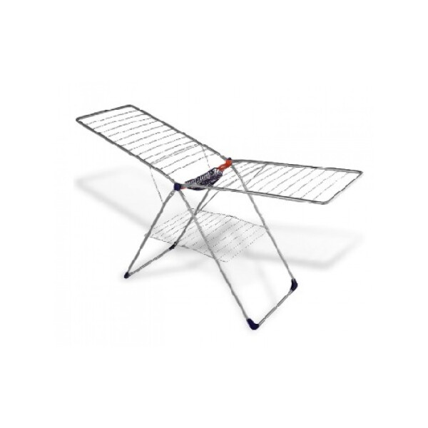 Пластик. заглушки, препятствующие царапанию пола. Пластик. механизм для фиксации сушилки в удобном положении. Рабочая длина 22м. Макс. нагрузка 20кг. Вес 3,8кг. Порошковая краска.Цвет серебристый металлик.