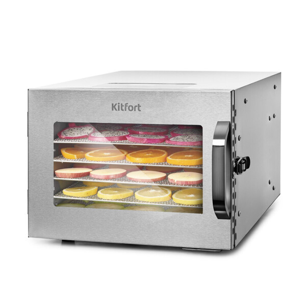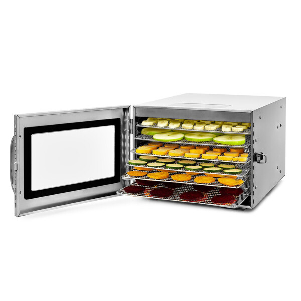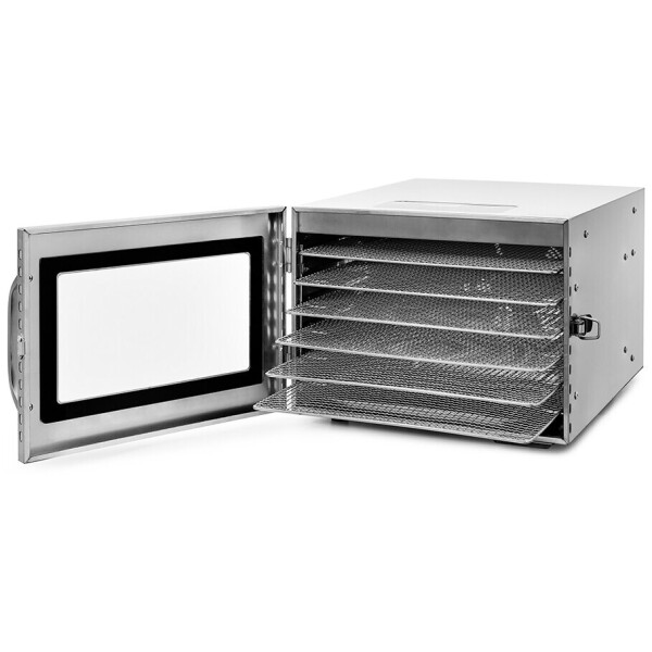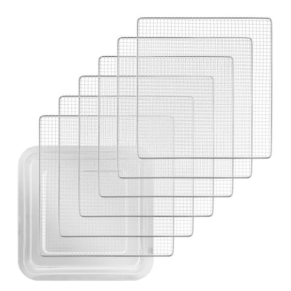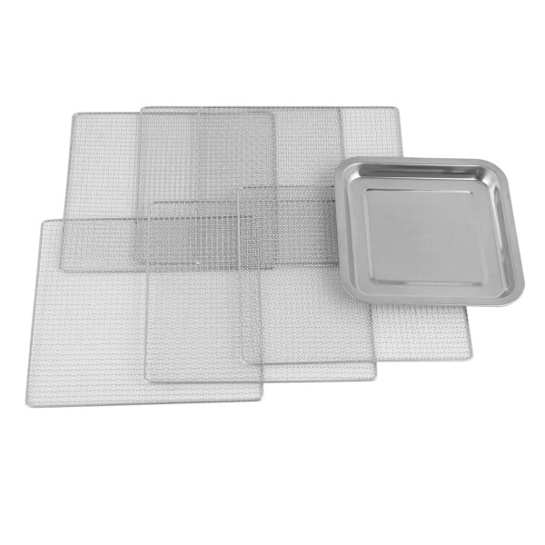 Сушилка имеет в комплекте 6 поддонов для сушки и 1 поддон для жидкости. Поддоны выполнены из нержавеющей стали.