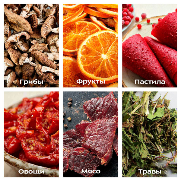 Электрическая сушилка предназначена для сушки овощей, фруктов, ягод, грибов, корнеплодов, трав и зелени, а также мяса и рыбы, хлеба.